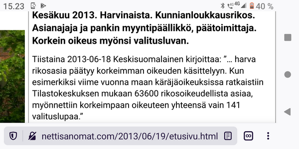 Seuraavan kirjoituksen poistamismääräyksen korkein oikeus palautti hovioikeuden uudelleen käsiteltäväksi. Kirjoitus nyt hovioikeuden hyväksymässä muodossa. |