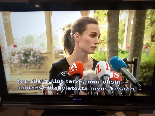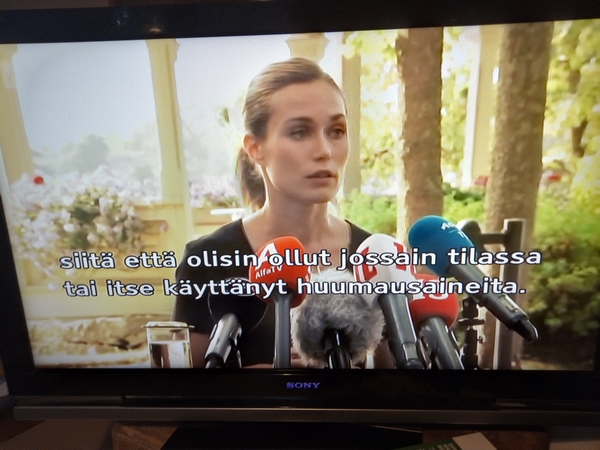 ... ettei ole ikinä käyttänyt huumeita. Marin kommentoi juhlimistaan tiedotustilaisuudessa Kesärannassa. Julkitulleissa videoissa Marin juhlii juljisuuden henkilöiden kanssa. Hän kertoo olleensa jatkuvasti tavoitettavissa.