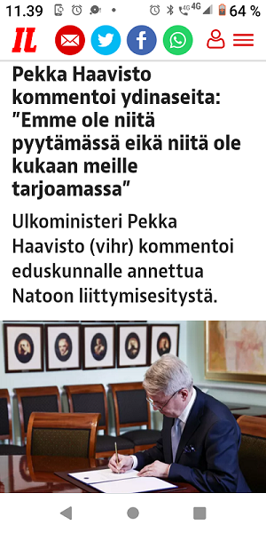 2021. TAMMIKUU. PRESIDENTTI SAULI NIINISTÖ UUDENVUODENPUHEESSAAN. ”TEIMME MÄÄRÄTIETOISESTI SELVÄKSI OLEVAMME OSA LÄNTTÄ." LUE! 2015 HEINÄKUU. PRESIDENTTI SAULI NIINISTÖN SELITYS, MIKSEIVÄT VENÄLÄISET PÄÄSSEET ETYK-JUHLAKOKOUKSEEN.