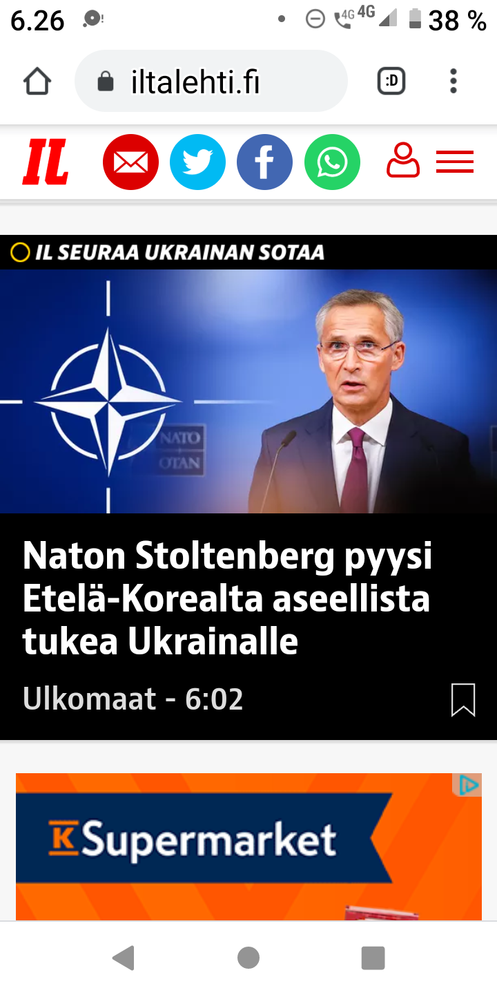 Lue myös! Arkisto 2022. Helmikuun 24. päivä 2022. Yle Radio1 aamulla klo 5:58 puheentunnistuksella. Lue! Lue myös! Arkisto 2022. Helmikuun 27. päivä 2022. Suomi lähettää tykkejä sotaan. Lue! |