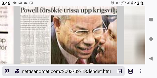 Irakia vastaan. DAGENS NYHETER sunnuntaina 19. tammikuuta 2003.