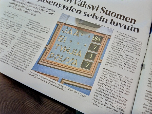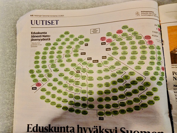 4.3.2023. Ydinasevaltio Suomi. Helsingin Sanomat uutisoi Nato-äänestyksestä torstaina 2.3.2023 mm. näin. Alkuun |