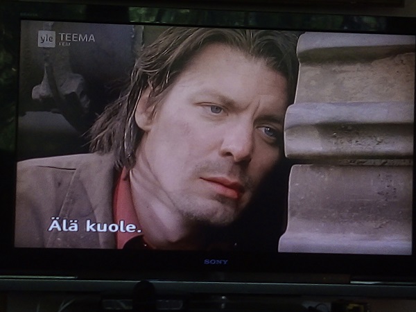 Menen soittamaan apua. Älä kuole. En minä tähän kuole. "En minä tähän kuole." Viimeinen repliikki Aki Kaurismäen elokuvassa Laitakaupungin valot. Elokuvan seitsemän viimeistä kuvaa kuvasarjana. Yle Teemakanavalta sunnuntaina 30.7.2023 13:09:46 - 6 sek - 4 sek - 9 sek - 6 sek - 8 sek - 5 sek myöhemmin. Kuvat Pertti Manninen.