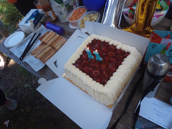 ![]() Mansikkakakku. 11 - "Paljon Onn ... Frans! Oona, Kati & Top ..." Kakku à la Lapinkylän leipomo-kahvila, kevätkääryleet à la Ting. Sunnuntaina 30.7.2023 14:03. Uusimaa. Kirkkonummi. Björkdal. Kuva Pertti Manninen. Maanantaina 31.7.2023.