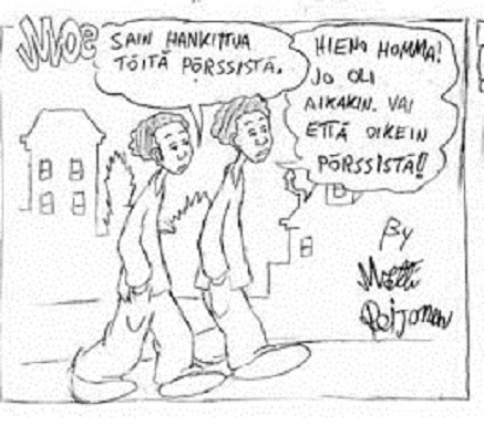 Sanomanetti - Tiistai 3.10.2023. 20 vuotta sitten 16.10.2003. Sarjakuva Moe. Moe - By Matti Reijonen - Sain hankittua töitä pörssistä. - Hieno homma! Jo oli aikakin. Vai että oikein pörssistä! Sitten: MUSTAPÖRSSI - Moe! Käytkö hinnoittelemassa ne aamulla tulleet tavarat. - Ok! --- - 20 vuotta sitten 2.10.2003. Pääkirjoitus. Puhetta. "Hyvät maanmiehet, tilanne on vakava. - Pääkirjoituksia. Linkit --- Sunnuntai 1.10.2023. Kurjet lentävät. Kurjet lentävät. Vain äänikonsertti auttoi näkemään korkealla lentävät linnut metsäpolun siimeksessä. Uusimaa. Kirkkonummi. Lapinkylä. Sunnuntai 1.10.2023 17:14. Kuva Pertti Manninen. --- Lauantai 30.9.2023. Nettisanomat lauantai 2006-11-11. Legenda: "Jos sä olet niin helvetin fiksu, niin miksi sä olet niin helvetin köyhä." Henrik Kuningas. Nyt 2006: "Pörssissä Sammon osake kallistui torstaina lähes kahdeksan prosenttia. - Kuva: "Super Nova". Pertti Manninen. - Pääkirjoitus. Vaurastumisesta tulee tehdä hyve eikä sitä tule tulkita "riistoksi". - Mukana myös Suomen taloushistorian kavalin ja peitellyin pelastusoperaatio, Suomen Yhdyspankin omaisuuden siirtäminen turvaan. Aivoina Björn Wahlroos ja Ahti Hirvonen Lue! --- Perjantai 29.9.2023. EXTRA. Veropakolainen Björn Wahlroos vuosien varrelta. Juoksupojasta pomoksi. Joitakin raapaisuja täältä. Lue! Nalle Björn Wahlroos. 1992 "Miksi juuri nyt? Tähdet olivat suotuisat." Kuva. Björn Wahlroos-story. 18.8.2009. - 12.8.1999. "... pitkitti juuri sopivasti konkurssiinmenoa niin, että silloinen Suomen Yhdyspankki (SYP) onnistui turvaamaan itselleen ja konkurssin ulkopuolelle 300 miljoonan saatavansa. Kauppa- ja teollisuusministeriön kansliapäällikkönä oli tapahtumahetkellä Bror Wahlroos ja Suomen Yhdyspankin eräänä johtajana hänen poikansa Björn Wahlroos." . - 18.11.1999. "Tahallinen hämäys keskustelussa 1: Pankkituki ei ollut pankkien tukea vaan pankkien omistajien tukea! Tahallinen hämäys keskustelussa 2: Voutilainen huonojen asiakkaiden puhe oli tarkoin ajoitettu juoni: Ruvettiin keskustelemaan lillukanvarsista!" Pankinomistajien tuki. - 20.5.2004. "Pankki oli matkalla kohti loppuaan, osakkeenomistajien rahat ja omaisuudet olivat vaarassa. ... Johtokunnan jäsenet Ahti Hirvonen ja Björn Wahlroos lukivat madonlukuja ja johtivat puhetta. Lopuksi esitettiin Suomen taloushistorian kavalin ja peitellyin pelastusoperaatio, oli turvattava paikallaolijoiden ja muidenkin pankkien suuromistajien osakkeet ja omistukset. " TALOUSARVIO YLE. Radio perjantaina 14.05.2004 SEPPO KONTTINEN. - 11.11.2006. Otsikko: Sampo Pankki myytiin Tanskaan. Sampo-konsernilla on nyt kassassa irtorahaa 5 miljardia. Wahlroos: Suomen suurin käteiskauppa. Konserniin jäävät vakuutusyhtiö If ja Henki Sampo. Kuvateksti: Sammon konsernijohtaja Björn Wahlroos esitteli eilen tyytyväisenä Danske Bankin kanssa tehtyä kauppaa. Wahlroosin oman Sampo-omistuksen arvo kasvoi torstaina 208 miljoonasta eurosta 224 miljoonaan euroon.Legenda: "Jos sä olet niin helvetin fiksu, niin miksi sä olet niin helvetin köyhä." Henrik Kuningas. 11.11.2006. JATKUU? --- Keskiviikkona 27.9.2023. Päivälleen 24 vuotta sitten: Katujuopottelu kuriin Helsingissä! Viina virtaa vain aidan sisäpuolella? Lue! - 24 vuotta sitten: torstaina elokuun 12. päivänä 1999 Köyhät opiskelijat, painukaa helvettiin! Ette maksa tarpeeksi pankinomistajien tukea! "Kokoomuksen lähtökohtana on ollut tiukka budjettilinja." Ben Zyskowicz, kokoomuksen eduskuntaryhmän puheenjohtaja lue lisää leikkauksista "Yksilöön näin voimakkaasti kohdistuville leikkauksille saa totisesti etsiä vertailukohtia sosiaaliturvamme historiasta." "Jos leikkaus toteutetaan, menettää opiskelijaperhe pahimmillaan yli 7000 markaa vuodessa, keskimäärinkin pitkälti yli 4000 markkaa. Vertti Kiukas, Helsingin yliopiston ylioppilaskunnan hallituksen jäsen lue lisää hallitusohjelmapetoksesta "Pienetkin leikkaukset tuntuvat opiskelijan kukkarossa pahalta, mutta kaikki on suhteellista." Helsingin Sanomien pääkirjoitus, (lehden vastaava päätoimittaja on Janne Virkkunen). lue lisää leikkauksista. ---Tiistaina 26.9.2023. Lähtöä odottaen. Joutsenet pellolla. Uusimaa. Kirkkonummi. Lapinkylä. Maanantai 25.9.2024 15:33. Kuva Pertti Manninen. - Kommentti: Orpo ja Purra yrittävät tökeröä taloustemppua, jolla Reagan ja Thatcherkin saivat aikaan mittavaa vahinkoa. Lue! Kommentti. Jan Hurri. Ilta-Sanomat Taloussanomat Sunnuntai 24.9.2023. Lue! "Tulonsiirrot köyhiltä rikkaille ovat tökeröä politiikkaa, mutta ne eivät ole Orpon tai Purran keksintöä. Samaa kokeilivat jo 1980-luvun ”suuret talous-uudistajat" Reagan ja Thatcher – surkein seurauksin." --- Sunnuntaina 24.9.2023. Syksyn lehdet metsäojassa. Lehdet ja risut odottavat talvea ja kevättä muhentaakseen uutta voimaa seuraavalle kesälle. Uusimaa. Kirkkonummi. Lapinkylä. Sunnuntai 24.9.2024 15:18. Kuva Pertti Manninen. - Näin paljon korkeakoulu- opiskelijoiden talous on heikentynyt: Yliopistoja valtaavien opiskelijoiden huoli on aito. Uusi Suomi. Kommentti. Sonja Mänty. Lue! --- Perjantaina 22.9.2023. Ajankohtaista narutusta? Narutusta Mansessa 2023 Narutusta Moskovassa 2022. - Keskiviikkona 20.9.2023. KALTSIN KALTSIT Valokuvaaja Aulis Nyqvist järjesti kirjaimet riviin ja niin syntyi slangikirja "KALTSIN KALTSIT (Bammailua Kaltsista) tunnelmiin liittyvin valokuvin. - HS: Kirjailija Torsti Lehtinen kuollut Kirjailija, filosofi ja kääntäja Torsti Lehtinen on kuollut lauantaina Helsingissa. Lehtinen oli 81-vuotias. Ylen tekstitv tiistaina 19.9.2023 16:20 Tuuli käy heidän ylitseen. RIP Torsti. Pertti Manninen. - Keskiviikkona 20.9.2023. Niinistön sanoja ja puheita tulkitaan ja ihmetellään. Ilta-Sanomat tiistai 19.9.2023 Venäjän media kuhisee ERIKOISIA TULKINTOJA NIINISTÖN SANOISTA Iltalehti tiistai 19.9.2023 Huippuasiantuntija IHMETTELEE NIINISTÖN YDINASEPUHEITA. --- Maanantaina 18.9.2023. Luottamusta. Ulkomaat Niinistö Putin HS 17.9. - Trump Putin Iltalehti