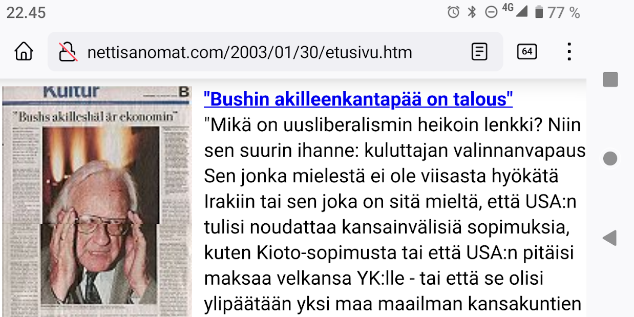 Torstai 19.1.2023. "Massiivisia protesteja Irakin sotaa vastaan." http://www.nettisanomat.com/ (Kuvat isonnettu 19.1.2023) |
