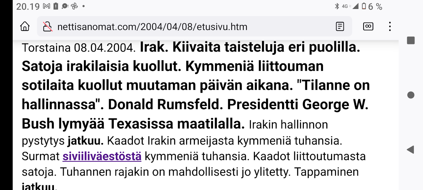 Torstai 19.1.2023. "Massiivisia protesteja Irakin sotaa vastaan." http://www.nettisanomat.com/ (Kuvat isonnettu 19.1.2023) |