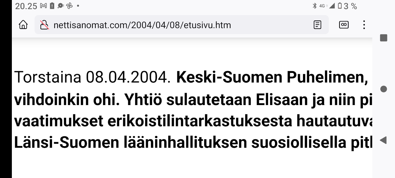 Nettisanomat 20 vuotta sitten 3.7.2003.