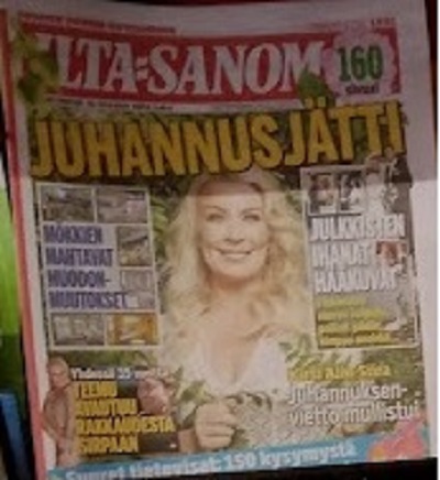 JUHANNUKSEN JÄTTILEHTI Tv-ohjelmat, lisäristikot, juhannusvisa... ILTALEHTI Petteri Orpon erikoishaastattelu JUHANNUS PERHEEN KANSSA KESARANNASSA TALLAINEN SANNA MARIN ON KULISSIEN TAKANA Lon suuri kysely TÄLLAISTA ON SUOMALAISTEN SEKSIELÄMÄ Okrainassa taistellaan suomalaisten opelitia "PELASTANUT MONTA HENKEA "Yksi heikkous Juha Miedon, 74, OHJEET .. STRESSIN POISTOON Helmi Loukasmäki, avoimena JATKUVA VERTAILU ARMIIN TURHAUTTAA 12-4 TESTASIMME MAKULONKEROT JA UUDET GRILLIMAKKARAT Mervi Kallio, 47, PALJASTAA HUIMAN KUNTONSA