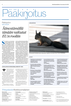 Pääpuhetta 8.5.2024. Lue! Työtä kaikille! Pääkirjoitus 1.5.2024. Lue! Kunnian polut 27.4.2024. Kuvat Vielä 6 palloa. Kuvat Takatalvi. Kuvat Cadillac 1956 ja Audi 2024. Kuvat Pääkirjoitus. Pysäyttäkää Stubb ajoissa! Lue! Naakat - Sale. Suomi - Oi maamme - Fratelli d'Italia - Kurkia pellolla - Näin on ... - Kokoontumista - Fasaani ja sepelkyyhky - Iloa ja surua. Kuvat |