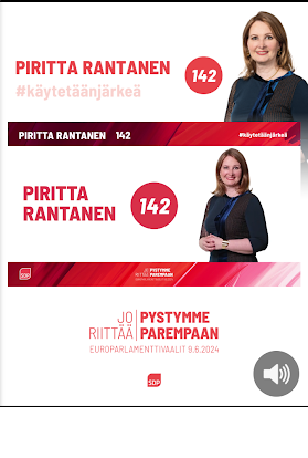 "HS:n mittauksessa kokoomus, SDP sekä kristillisdemokraattien ja Liike Nytin vaaliliitto saisivat lisäpaikat, Vihreät ja RKP menettäisivät yhdet paikat." "Näin paikat jakautuisivat. Kok 4 (3), SDP 3 (2), Ps 2 (2), Kesk 2 (2), Vihr 2 (*3), Vas 1 (1), Kd+Liik** 1 (0). RKP 0 (1) Puoluekannatus eurovaalimittauksessa. "Tutkimuksen virhemarginaali on noin 2,5 prosenttiyksikköä suurimpien puolueiden kohdalla joten tuloksiin sisältyy luonnollisesti epävarmuutta." " Kamppailu viimeisistä paikoista on mittauksen perusteella tiukka. Viimeisessä paikassa on kiinni vihreät ja toiseksi viimeisessä kokoomus. RKP:n eniten ääniä kerännyt ehdokas olisi ensimmäinen ulos jäävä. Toisena ulos jäisi vasemmistoliiton toiseksi eniten saava ehdokas." Pääkirjoitus. Tavallisesti näissä galluppien otsikoissa unohdetaan tutkimukseen luonnostaan sisältyvät virhemarginaalit herttaisen herttaisesti. Tähän syyllistyvät tavallisesti kaikki tiedotusvälineet. Kun nyt kerrankin sattui kohdalle otsikko: Viimeisestä meppipaikasta tulossa kova kisa (HS 4.6.2024), joka todella kertoi kaiken, toisin sanoen viimeinen paikka tai pikemminkin pari- kolme viimeistä paikka ratkeavat mahdollisesti hiuksen hienoilla eroilla, on sitä kehuttava. Tähän sitten pohdintaa, joka ehkä itse tekstissä on sitten suoraviivaistettu. Kun oletetaan, että kaksi prosenttia annetuistä äänistä menee hukkaan heti kättelyssä (Muut),. niin ihan varmaan meppipaikkaan tarvitaan 6,53 prosenttia annetuista äänistä. Suomessa kuitenkin lasketaan paikat vertailuluvuilla, eli vaaliliiton äänimäärä jaetaan sitten luvuilla 2, 3 ja 4 jne, jolloin siitä viimeisestä sitten ihmetellään kenelle se osuu. Jos nyt kuitenkin selostustekstissä otettaisiin huomioon virhemarginaalitkin, niin HS:n tutkimuksenkin mukaan kannatusprosentit ovatkin vaihteluvälein ilmaistuina: Koko äänestyspotti on tietenkin jaettava, mutta yksittäisen puolueen tulos voi olla tietenkin ala- tai ylärajalla tai tietenkin näistäkin poikkeava, koska vaaliput lasketaan vasta sunnuntaina 9.6.2024 klo 20 jälkeen ja tulosta julistetaan varmaankin sitten tuntia myöhemmin. Viimeisestä meppipaikasta tulossa kova kisa! Pääkirjoitus. Pertti Manninen. Lauantai 8.6.2024 10:34. |