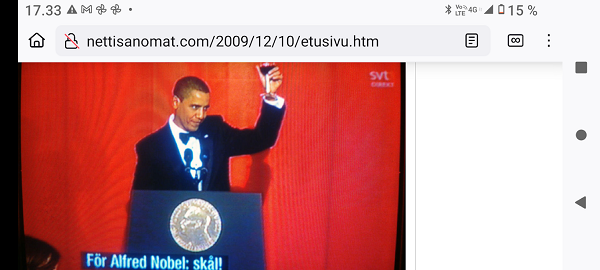 20 vuotta sitten, 8. joulukuuta 1980, hyvästi. "Uneksi! Ei taivasta, helppoa, eikö niin? Ei helvettiä, yllämm' vain avaruus. Uneksi! Ihmiskunta hyväks' päivän tään. Lue! Sorvola. Kaupunkilaispoika hiihtolomalla 1957 Sorvolan talossa. Lieto, Yliskulma. Kuvat: Pertti Manninen. Kuvatekstit alkuperäisestä negatiivikirjasta. Vain yksi filmirulla oli mukana. Kuvat Suomalainen sosialisointi Jyväskylässä. Kaavaryöstö etenee. Raportti Itsenäisyyspäivän aattona 2002. Lue! Linnan juhlat 06.12.2003. Kuudettakymmentä käyvä ukkomies kolmikymppisen neitosen kimpussa! Nykyaikaista mediamenoa iltapäivälehtien etu- ja takapuolesta niiden kertoessa ukkomiehen onnesta. Alaston raportti. Sunnuntaina 26. joulukuuta 2004, tapaninpäivänä, kello 08.55 Suomen aikaa avasin television, joka oli jäänyt edellisenä iltana Ruotsin kanavalle. Ruudussa oli tekstiuutisia, joista kävi ilmi, että valtava hyökyaalto on iskenyt Intian valtameren rannikoille. Käänsin ohjelman BBC.News-kanavalle ja siellä oli jo kuvia ja selostusta tapahtuneesta. Kuva John Lennon Double Fantasy Yoko Ono. 08.12.2005 joulukuun torstaina klo 21.47. "Double Fantasy". Kuva ja rajaus Pertti Manninen SVT4:n kuvasta. Kuva Kuva. Helsinki kasvaa rajusti pohjoiseen pitkin Mannerheimintietä. Ruskeasuon bussivarikkoa on purettu ja tonttimaa odottaa täyttäjiään. Porakone rei'ittää kalliota Pasilan orren rakentamiseksi. Pyramiditalo on Pikku-Huopalahden portinvartija. Helsinki sunnuntaina 2006-11-26 aamulla hämärässä ennen yhdeksää. Pertti Manninen. Luistinrata harmaassa sateessa Helsingin rautatientorilla. Helsinki. Kansallisteatteri (Aleksis Kiven patsaan takana), asuintalo (Pepsi), Hotelli (entinen SOK:n pääkonttori), Casino, Fennia, liiketalo (Finnkino, Suomi-yhtiöt, aikoinaan Nokia Oy.n pääkonttori). Kuva viime lauantaina 2007-12-08 klo 12.50 bussin 75 sateen piiskaamasta ikkunasta matkalla Malmille. Pertti Manninen. Kuva "Kerro minulle keitä kutsuit Nobel-juhlaan, niin minä kerron millainen olet." Julkisuudessa liikkuneiden tietojen mukaan tasavallan presidentti Tarja Halonen ei saanut kutsua, sensijaan pääministeri Matti Vanhanen ja ulkoministeri Alexander Stubb saivat. Muiden kutsuttujen ja kutsumattomien arvailemiseksi Nettisanomat on hiukan raapaissut arkistoaan. Lue! Rauhan Nobel-palkinto 2009. "För Alfred Nobel: skål!" (Käännös). SVT1. Torstaina 2009-12-10. Kuva: Pertti Manninen SVT1:n lähetyksestä torstaina 2009-12-19 klo 23:46 (Suomen aikaa). "Rasmus katselee lintuja ja välillä kirskuttaa". Kuva tiistaina 2010-12-07 klo 11.11. Pertti Manninen Veteraani Viljo Hutri: Meillä on nyt menossa hyvä aika. Tikkakoskelainen sotaveteraani Viljo Hutri, 90, ei epäröi, kun häneltä kysyy, mikä Suomessa on parasta. Itsenäisyyspäivänä 6. joulukuuta 2011 UUSI AALTO Keskisuomalaisen välissä. Julkaisijana Kokoomus. Gloria. Laulutuokio kauppakeskuksessa. Jyväskylä Forum. Perjantai 2012-12-07 19:26 - 20:01. Pimeydestä valoon - Gloria-kuorolaulu - "Oikeus olla tähti"- kehitysvammaisten seinäkalenterin talvikuvat - Kauppakassit - Iceland. Kuvat: Pertti Manninen. Video Gloria-laulusta (2:30). Kuvat! Iltalehti.fi lauantaina 2013-12-07: Hurjat kustannukset. ”Juttua muokattu: Mellakoitsijoita kuvaili rosvojoukoksi poliisipäällikkö Markku Luoma, ei ylikomisario Harri Nojonen kuten jutuussa aiemmin väitettiin”. Viikkosanomat joulukuu 8, 2013 Iltalehti kertoi seuraavana päivänä, että tamperelainen poliisipäälikkö luonnehti mielenosoitusjoukkoa rosvojengiksi tai rosvojoukoksi. Lehti joutui sitten oikaisemaan tietonsa, koska luonnehtija olikin poliisimestari tai päinvastoin. Uutiskuva tulossa loppuun. Tampere-talon väkeä hän ei luonnehtinut mitenkään, puhui ilmeisesti juhlijoista. Tietenkin hän puhui niinkuin oikeaksi koki. Tämä rosvojoukko piti ilmeisesti sitten juhlakansaa rosvojoukkona. Olihan se juuri viikolla päättänyt leikata vanhustenhoidosta 300 miljoonaa ja esittänyt muitakin köyhiin kohdistuvia leikkauksia, siis kipeimmin tuntuvia. Esimerkiksi jotain hammashoidon huonontamista, siis ei oikeutta päästä kunnalliseen hammashoitoon jne. Tänään muuten tuli aamulla radiosta tutkimustulos, jonka mukaan piilevät hammastulehdukset altistavat aivoverenvuodoille. Nämä rosvot saavat siis juhlia poliisipäällikön suojeluksessa. ... Lue! "Viimeinen kuva" eli selfie ellei peräti selfish! PS. Viimeinen kuva tarkoittaa tämän pokkari Ricoh PX:n simahtamista suolaisessa merivedessä, vaikka kamera myyntihetkellä olikin "waterproof". Kuvat Peuroja takapihalla. Kirkkonummi. Lapinkylä. Kuvat Juha Sipilä avasi jälleen omistuksiaan: ”Useilla suomalaisilla on rahasto-osuuksia, niin minullakin” Ilta-Sanomat. Julkaistu: 9.12. 22:00. Päätöntä menoa. Sdp:n Jutta Urpilainen vauhdittamassa kokoomuksen presidenttiehdokas Sauli Niinistön kampanja-avausta. joulukuu 8, 2017. Niin meni kanavatkin sekaisin, että Ylen illan uutislähetyksen kuviin jäi toisen kanavan tekstit. Kuvat puhukoot puolestaan Sdp:n entisen puheenjohtajan päättömästä touhusta. Viikkosanomat Pertti Manninen perjantaina 08.12.2017 klo 21:24. Kuvat Ministeri Anne Berner ei valvonut. Hurmahenkisyyttä tietojen luovuttamisessa. "Kokonaisarvion selitys". Katri Kulmuni facebookissa eilen ja tänään tiistaina 10.12.2019. 2020. Joulukuu. Sotalaivat kalastuksen tukena. ”Kallista kalastusta” sanoi ministeri jo edellisen konfliktin sattuessa. Viikkosanomat-blogi Joulukuu 13, 2020. Hallitus maskissa 2:ssa eri aitiossa eduskunnan kyselytunnilla torstaina 9.12.2021 puhemiehen molemmin puolin. Perhe- ja peruspalveluministeri Krista Kiuru, SDP vastaa puheenjohtaja Sari Essayahin, KD kysymykseen soteaikataulun realistisuudesta. Kuvat Kuusi kuvaa Kökkelissä. Rintamalle lähtöä odottaen. - Lähettipojan kuolema. - Sota on loppunut, rauha alkanut. Tuntematon sotilas. Edvin Laine 1955. Yle Teema keskiviikkona 6.12.2023. Kuvat Pertti Manninen. - Niil saa raappi syämisekki valmiiks. Kaikki saateri s