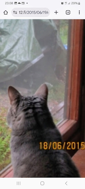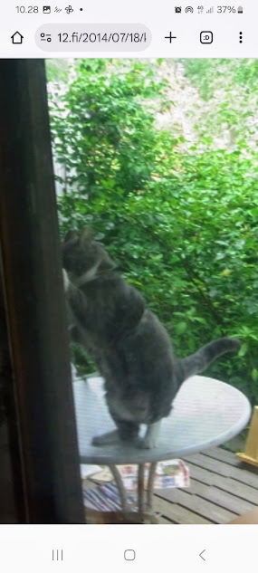 | 24.7.2014. "Kissa pöydällä! Rasmus raapii ikkunaa päästäkseen sisätiloihin."
