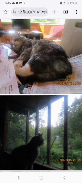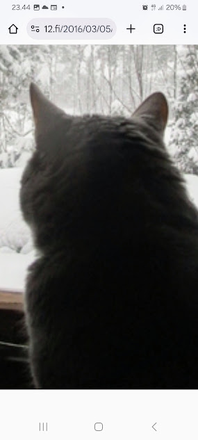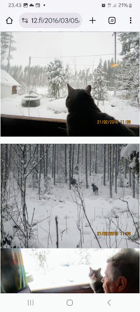 Sanomanetti nro 3101 - Lauantai 28.6.2025. - Arkisto. - Rasmuksen matkassa 17 vuotta. Kiitos. Lue! 5.3.2016. HIRVET LUMESSA UUDESSA MAISEMASSA. "Poika ja Rasmus-kissa ihailevat harvemmin ohi loikottavia hirviä." HIRVET LUMESSA UUDESSA MAISEMASSA - Äidin 100-vuotispäivänä 05.03. Ei ehtinyt äitini nähdä tätä maisemaa kuin sielunsa silmillä. Muutama vuosi kuolemansa jälkeen synkkä metsä hakattiin kokonaan pois ja niin maisema avartui ja ilta-aurinkokin paistaa kesällä myöhään yöhön. Kaivon rengas on jäänyt muistuttamaan menneestä, isästäkin, ja varastokin on rakennettu myöhemmin. Poika ja Rasmus-kissa ihailevat harvemmin ohi loikottavia hirviä, peurojahan kulkee päivittäin puhumattakaan pienemmistä. (Lapsenlapsi syleilee mummiaan lähtiessään kotimatkalleen tämän 90-vuotispäiviltä.) Kuva Kuvat: Pertti Manninen helmikuun sunnuntaina 21.02.2016 klo 11:09. ISONNA! - 15.5.2016. VAPPUNA 2016. Ruoan aika, - Soiton aika, VAPPUNA 2016. Marssin aika, 3 kuvaa - Lakin aika, 3 kuvaa - Ruoan aika, 4 kuvaa - Soiton aika, 2 kuvaa - Lasten aika, 2 kuvaa - Uutisten aika 1, 14 kuvaa - Elokuvan aika, 11 kuvaa - Uutisten aika 2, 14 kuvaa - Laulun aika, 1 kuva. HOTELLI NUUKSIO, pianoa soitti Jyrki Niskanen. Kuvat 30.04.2016 - 02.05.2016. Pertti Manninen. ISONNA KUVAT! - 19.11.2017. Arkisto 2015. "KISSAN NIMI ON RASMUS, JOKA NUKAHTAA PAPEREIDEN PÄÄLLE JA KATSELEE KUUTA." Arkisto 2015. HEINÄKUU 2015. PRESIDENTTI SAULI NIINISTÖN SELITYS, MIKSEIVÄT VENÄLÄISET PÄÄSSEET ETYK-JUHLAKOKOUKSEEN JA MUITAKIN KUVIA. KISSAN NIMI ON RASMUS, JOKA NUKAHTAA PAPEREIDEN PÄÄLLE JA KATSELEE KUUTA. Kuvat: Pertti Manninen Ylen uutislähetyksestä teksteineen. Uusimaa. Kirkkonummi. Lapinkylä keskiviikko 01.07.2015 ja torstai 02.07.2015. ISONNA! --- 2008 - 2009. Täällä - 2010 - 2011. Täällä - 2012 - 2013. Täällä - 2014 - 2015. Täällä - 2018- 2019. Täällä - - - - - -- - - - - ---- SMILE from MODERN TIMES - --- Sivu2 - Lauantai 28.6.2025. - Kuvasanomat - Sanomatori - Viikkosanomat - Härkää sarvista - 12.fi - N:o 3101 - 2025-06-28 ja 2025-06-30, nettiin 2025-06-30 09:47, linkkejä 2025-06-30. "Haukkaavan logon" teki Jaikon kurssilla 1999 Mika. Ensimmäisen kerran logo oli lehdessä tortaina 30.9.1999. Pari vuoden jälkeen se korvautui steriilillä kirjainlogolla. Nyt se on taas mukana!