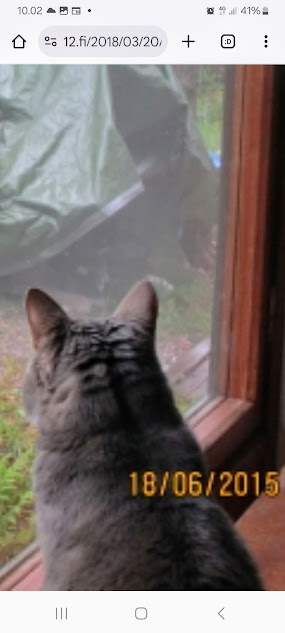 Sanomanetti nro 3102 - Sunnuntai 29.6.2025. - Arkisto. - Rasmuksen matkassa 17 vuotta. Kiitos. Lue! 2018 - 2019. Lue! - 2008 - 2009. Täällä - 2010 - 2011. - Täällä 2012 - 2013. Täällä - 2014 - 2015. Täällä - 2016 - 2017. Täällä - Arkisto. 20.3.2018. "Rasmus-kissakin on erityisen kiinnostunut tästä otuksesta. " 2018. Maaliskuu. Onnellisuuden päivä. Peurat tulevat tervehtimään aivan ikkunan alle lintujen pudottamia pähkinöitä mutustelemaan. Radiossa kerrotaan myöhemmin, että tänään on Kansainvälinen onnellisuuden päivä. On myös kevätpäivän tasaus. Muistojen Bulevardissa soi Imagine ja kappaleen loputtua toimittaja kertoo, että tänään on myös päivä, jolloin John Lennon ja Yoko Ono vihittiin (1969). Kun en näistä vielä tänään tiennyt, siis kevätpäivän tasauksesta ja tästä vihkimisestä ajattelin nostaa tänne ensimmäiseksi vuosia sitten tekemäni käännöksen Smile-laulusta. Tietenkin ensimmäistä kertaa näin lähelle tänä talvena tulleet peurat veivät voiton. Kuvat: Pertti Manninen. Kirkkonummi. Kauhala. Tiistai 20.03.2018 8:49 ja teksti 12:30. Aikaisempia peurakuvia: "Peura saapuu ikkunan alle ja kiinnittää kaiken huomion tässä uudessa ympäristössä. Rasmus-kissakin on erityisen kiinnostunut tästä otuksesta, jonka hän näkee ensimmäistä kertaa elämässään. Uutislähetys jatkuu Juhannuksen liikenteestä kertovalla jutulla." Kuvat: Pertti Manninen. Uusimaa. Kirkkonummi. Kauhala klo 20:35 - 20:52. - 21.3.2018. 2018. Maaliskuu. Kuusi kuvaa keskiviikkona 21.03 iltapäivällä. Peura ja hirvet. Kuvat: Pertti Manninen. Kirkkonummmi. Kauhala. - l 22.3.2018. 2018. Maaliskuu. Kuusi kuvaa torstaina 22.03 aamupäivästä iltaan. Päiväkotilapset. Lumipyry. Peurat. Kuvat: Pertti Manninen. Kirkkonummi. Kauhala. Keskusta. Kauhala. - 10.8.2018. "Rasmus-kissa nukahtamaisillaan juomakuppinsa viereen tv:n lähettäessä ohjelmaa Tove Janssonin elämästä tutun musiikin soidessa." Tove Jansson 104 vuotta Lue! Arkisto 2014. Tove Jansson 100 vuotta tänään. Kuva: Rasmus-kissa nukahtamaisillaan juomakuppinsa viereen tv:n lähettäessä ohjelmaa Tove Janssonin elämästä tutun musiikin soidessa. Perjantaina 08.08.2014 klo 18:46. Kuva: Pertti Manninen. Isonna! Katso myös! Joulukuu 2013. "Unelma valkeasta joulusta" - "Ja aamulla ..." Kuvat Mitäs tämä on? - Mutta peikko kulta, miten sait nelosen käytöksestä? Kuvasarja 8.8.2018. Humppilassa Iittalan myymälässä Juhla-Muumi-mukit olivat loppuneet sinne ehtiessäni Erikan soitettua hiukan liian myöhään tai sitten liikaa hidastellessani sinne kiiruhtaessani. Monet jäivät ilman sielläkin. Pertti Manninen. - 19.12.2018. "Kissa oleilee mieluummin sisätiloissa. Lumista maisemaa ja lumitouhussa olevaa isäntääkin on kiva katsella lämpimän ikkunan takaa." Lumen keskellä löytyy linnuille syötävää: siemeniä ja pähkinää. Kissa oleilee mieluummin sisätiloissa. Kuvasarja Keskiviikkona 19.12.2018 klo 09:51- 10:37. (Kuvien kello vielä kesäajassa!) Linnut löytävät ruokaansa ruokinta-astiasta. Hetkeä myöhenmmin lähempää. Talo lumen syleilyssä. Lumiset puut kolme kertaa. Kissan juoksunarukin on jäätynyt paksuksi pötkäleeksi. Lumista maisemaa ja lumitouhussa olevaa isäntääkin on kiva katsella lämpimän ikkunan takaa. Kuvat: Pertti Manninen. - 24.11.2019. Sunnuntai 24.11.2019. Marraskuu. Ajan kuvia. 22:10 Rasmus-kissa väsähtää lopulta tuolilleen oltuaan ihan oman hoitajansa sylissä useita tunteja matkan jälkeen. Kuvat: Pertti Manninen sunnuntaina 24.11.2019 11:12- 22:10 Keski-Suomen Jyväskylässä ja Uudenmaan Kirkkonummella. Kuvien paikkakunnat: Jyväskylä; Helsinki, Kirkkonummi Suomessa ja Irak sekä Libyan rannikko. - Linkki 2020- 2021. Täällä - - - - - -- - - - - ---- SMILE from MODERN TIMES - --- Sivu2 - Sunnun 29.6.2025. - Kuvasanomat - Sanomatori - Viikkosanomat - Härkää sarvista - 12.fi - N:o 3102 - 2025-06-30, nettiin 2025-06-30 15:21, linkkejä 2025-06-30. "Haukkaavan logon" teki Jaikon kurssilla 1999 Mika. Ensimmäisen kerran logo oli lehdessä tortaina 30.9.1999. Pari vuoden jälkeen se korvautui steriilillä kirjainlogolla. Nyt se on taas mukana!