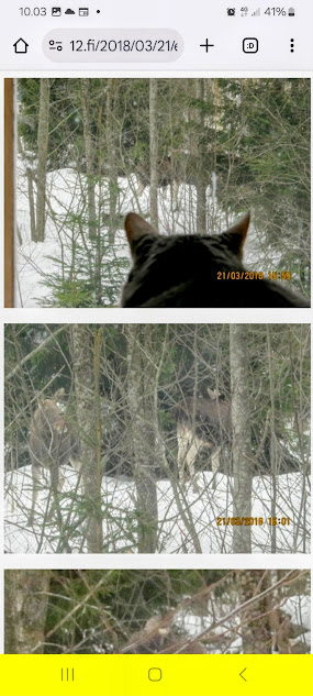 20.3.2018. 2018. Maaliskuu. Onnellisuuden päivä. Aikaisempia peurakuvia: "Peura saapuu ikkunan alle ja kiinnittää kaiken huomion tässä uudessa ympäristössä. Rasmus-kissakin on erityisen kiinnostunut tästä otuksesta, jonka hän näkee ensimmäistä kertaa elämässään. Uutislähetys jatkuu Juhannuksen liikenteestä kertovalla jutulla." https://www.nettisanomat.com/2018/03/20/etusivu.html