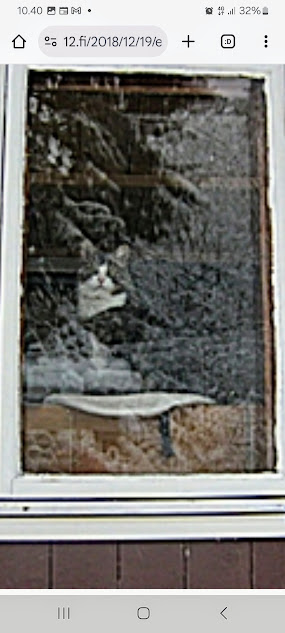 | 19.12.2018. "Kissa oleilee mieluummin sisätiloissa. Lumista maisemaa ja lumitouhussa olevaa isäntääkin on kiva katsella lämpimän ikkunan takaa."