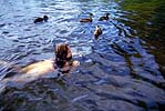 "Tyttö, sorsien sukua." Kuvannut Pertti Manninen. Osa kuvasta "Uimassa" 7.6.2001.