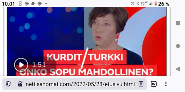 Kuvat maanantaina 23.5.2022. 2022/05/23 N:o 2520 - Tässä lähetyksessä: Lähetys jatkuu palohälytyksen selvittyä. Yle Tv1. Maanantai 23.5.2022 21:27. 2022/05/23 N:o 2520 - Tästä ei kerrota suomalaisille. Suomesta tulossa ydinasevaltio, joka sitoutuu NATO:n ydinasedoktriiniin: First Use-doktriinin mukaan ydinaseita voidaan käyttää sellaisia maita vastaan, jotka eivät ole hyökänneet liittolaismaahan tai, joilla itsellään ei ole ydinaseita. 2022/05/23 N:o 2520 - SYYSKUU 2016. ORAVA TAMMESSA. Kuvat tiistaina 24.5.2022. 2022/05/24 N:o 2521 - Kevään ensimmäinen? Paidaton lukija. Uusimaa. Kirkkonummi. Keskusta. Uimahalli. Penkki. Tiistai 24.5.2022 11:24. Pertti Manninen. "Studio Salotto. Parturi Kampaamo & Kauneuspalvelut. Avoinna sopimuksen mukaan." 2022/05/24 N:o 2521 - Ilta-Sanomat: Turkissa leviää nyt outoja valheita Suomesta. Iltalehti: Hurja vihanpurkaus Putinille. Ilta-Sanomat: Kollegat ylistävät konkaripoliitikkoa, Ilkka Suominen kuoli. 1939-2022, Iltalehti: Konkaripoliitikko on poissa. 1939-2022. Ystävät muistelevat Ilkka Suomista. 2022/05/24 N:o 2521 - Turkin presidentti Recep Tayyip Erdoğan sotki Suomen ja Ruotsin Nato-juhlat - ainakin väliaikaisesti. Iltalehti. Perjantai 20.5.2022. 2022/05/24 N:o 2521 - Tästä ei kerrota suomalaisille. Suomesta tulossa ydinasevaltio, joka sitoutuu NATO:n ydinasedoktriiniin: First Use-doktriinin mukaan ydinaseita voidaan käyttää sellaisia maita vastaan, jotka eivät ole hyökänneet liittolaismaahan tai, joilla itsellään ei ole ydinaseita. 2022/05/24 N:o 2521 - SYYSKUU 2016. ORAVA TAMMESSA. Kuvat keskiviikkona 25.5.2022. 2022/05/25 N:o 2522 - Kuvat. Laatua. Solifer aamulla Rustan edessä Kirkkonummella. Tiistai 24.5.2022 10:07. 2022/05/25 N:o 2522 - Kevään ensimmäinen? Paidaton lukija. Uusimaa. Kirkkonummi. Keskusta. Uimahalli. Penkki. Tiistai 24.5.2022 11:24. Pertti Manninen. "Studio Salotto. Parturi Kampaamo & Kauneuspalvelut. Avoinna sopimuksen mukaan." 2022/05/25 N:o 2522 - Ilta-Sanomat: Turkissa leviää nyt outoja valheita Suomesta. Iltalehti: Hurja vihanpurkaus Putinille. Ilta-Sanomat: Kollegat ylistävät konkaripoliitikkoa, Ilkka Suominen kuoli. 1939-2022, Iltalehti: Konkaripoliitikko on poissa. 1939-2022. Ystävät muistelevat Ilkka Suomista. 2022/05/25 N:o 2522 - Turkin presidentti Recep Tayyip Erdoğan sotki Suomen ja Ruotsin Nato-juhlat - ainakin väliaikaisesti. Iltalehti. Perjantai 20.5.2022. 2022/05/25 N:o 2522 - Tästä ei kerrota suomalaisille. Suomesta tulossa ydinasevaltio, joka sitoutuu NATO:n ydinasedoktriiniin: First Use-doktriinin mukaan ydinaseita voidaan käyttää sellaisia maita vastaan, jotka eivät ole hyökänneet liittolaismaahan tai, joilla itsellään ei ole ydinaseita. 2022/05/25 N:o 2522 - SYYSKUU 2016. ORAVA TAMMESSA. Kuvat torstaina 26.5.2022. 2022/05/26 N:o 2523 - Suomen pääministeri Sanna Marin (oik.) vierailemassa Irpinissä. Marinin vieressä vasemmalla Irpinin kaupunginvaltuuston edustaja. [Irpinin kaupunginvaltuusto]. 2022/05/26 N:o 2523 - Zelenskyi julkaisi kolme yhteiskuvaa Marinin kanssa. Suomen pääministeri Sanna Marin vierailemassa Irpinissä. Marin sodan runtelemassa Ukrainassa: ”Vaikea katsoa mitä Venäjä on tehnyt”. 2022/05/26 N:o 2523 - Lavrov varoitti länttä asetoimituksista Ukrainalle. Ilta-Sanomat. 2022/05/26 N:o 2523 - Erdogan saattaa valmistella kuoliniskua Rojavan kurdialueelle Syyriassa. Helsingin Sanomat. 2022/05/18 N:o 2515 - Tästä ei kerrota suomalaisille. Suomesta tulossa ydinasevaltio, joka sitoutuu NATO:n ydinasedoktriiniin: First Use-doktriinin mukaan ydinaseita voidaan käyttää sellaisia maita vastaan, jotka eivät ole hyökänneet liittolaismaahan tai, joilla itsellään ei ole ydinaseita. 2022/05/26 N:o 2523 - SYYSKUU 2016. ORAVA TAMMESSA. Kuvat perjantaina 27.5.2022. 2022/05/27 N:o 2524 - Lenin sai kyytiä Turusta. Minna Arve (kok) ja Petteri Orpo. - Leninin patsaan poistajat. 2022/05/27 N:o 2524 - Suomen pääministeri Sanna Marin (oik.) vierailemassa Irpinissä. Marinin vieressä vasemmalla Irpinin kaupunginvaltuuston edustaja. [Irpinin kaupunginvaltuusto]. 2022/05/27 N:o 2524 - Lavrov varoitti länttä asetoimituksista Ukrainalle. Ilta-Sanomat. 2022/05/27 N:o 2524 - Erdogan saattaa valmistella kuoliniskua Rojavan kurdialueelle Syyriassa. Helsingin Sanomat. 2022/05/27 N:o 2524 - Tämä se tekee rauhan... ydinaserauhan sateenvarjo! (Tapio. Kirkkonummen Sanomat). 2022/05/27 N:o 2524 - Tästä ei kerrota suomalaisille. Suomesta tulossa ydinasevaltio, joka sitoutuu NATO:n ydinasedoktriiniin: First Use-doktriinin mukaan ydinaseita voidaan käyttää sellaisia maita vastaan, jotka eivät ole hyökänneet liittolaismaahan tai, joilla itsellään ei ole ydinaseita. 2022/05/27 N:o 2524 - SYYSKUU 2016. ORAVA TAMMESSA. Kuvat lauantaina 28.5.2022