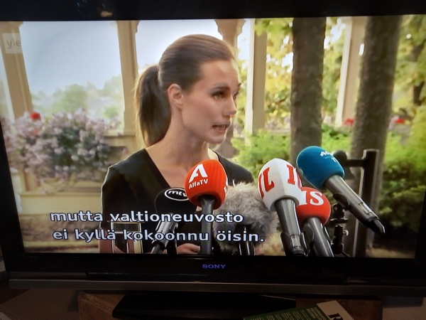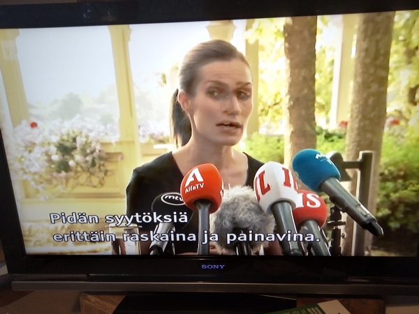 Yle TV1 Uutiset perjantaina 19.08.2022. ... ettei ikinä ole käyttänyt huumeita. Marin kommentoi juhlimistaan tiedotustilaisuudessa Kesärannassa. Kuvasarja. ... että pääministerin toiminta aiheutti vaaraa kansalliselle turvallisuudelle. ... suomalaisten suunnitelmat Keski-Euroopan energiamarkkinoilla. Venäjän hyökkäyssodan takia ... Tehtaat ovat joutuneet sulkemaan, kun Venäjä aloitti suurhyökkäyksen. --- Yle TV1 Uutiset perjantaina 19.08.2022. |