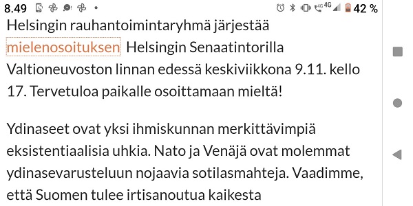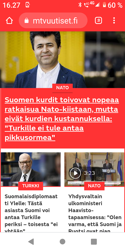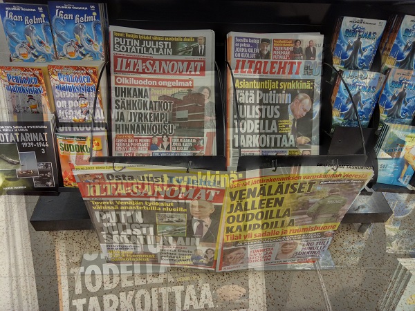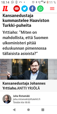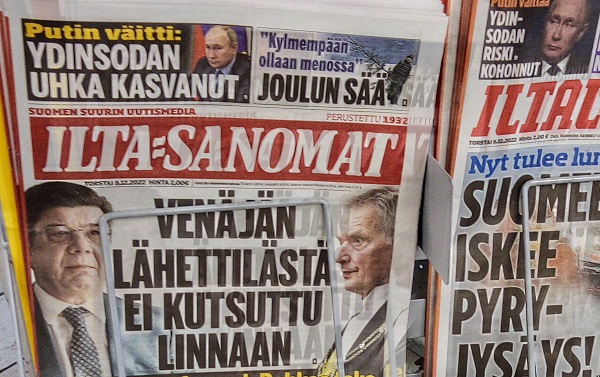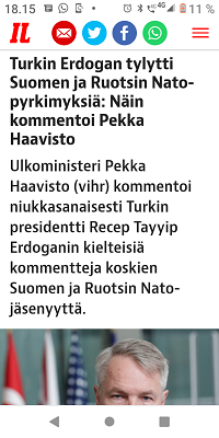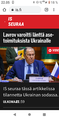 Sanomanetti 2022/12/23 N:o 2575 - Pääkirjoitus. Sähköyhtiöt vs. Marin-Lintilän hallitus: 100 - 0! Sanna Marin pääministerinä ja Mika Lintilä kauppa- ja teollisuusministerinä jäävät historiaan. - Kuusi syytä miksi yrityksellä tulee olla hyvät nettisivut. --- Kuvat ja jutut pääotsikoin. Joutsenen pelastus. - Presidentti Niinistö Ylen haastattelussa. (US) - Kuva: Pukki pulassa. Talvikuvia. - Naapuri boikotissa 2022 ja 2015. - Kuusi kuvaa Kökkelissä. - Ilta-Sanomat: Venäjän lähettilästä ei kutsuttu Linnaan. Arkisto 2015: PRESIDENTTI SAULI NIINISTÖN SELITYS, MIKSEIVÄT VENÄLÄISET PÄÄSSEET ETYK-JUHLAKOKOUKSEEN. Kuvasarja Ylen lähetyksestä. - Joukuun 6. 1999-2022. - Lukijan kuva. Harmaa päivä Itsenäisyyspäivänä 2022. Pohjois-Savo. Keitele. Nilakka. Selänranta. 6.12.2022 10:31. Kuvatervehdyksen lähetti Erika N. - Kuva. Illan hämärtyessä peura on löytänyt lintujen ruokintapaikan. - Pääkirjoitus. Viimeinen itsenäisyyspäivä ilman ydinaseita? Niinistö, Marin, Haavisto. Kuvitettu pääkirjotus. - Kuva: Illan hämärtyessä peura on löytänyt lintujen ruokintapaikan. - Lapsen oikeuksien julistus. - Isänpäiviä 1999-2022. - Arkisto: 1984 KOM TILL VÄSTERÅS STOPPA KÄRNVAPENKRIGET - Ydinase. Kuvia ja kirjoituksia. - Sekaisin. Iltaiset otsikot torstaina 20.10.2022. - Kuva. Myrskyn jälkeen. - Verimyrsky jatkuu 2022. - Kuva. Näin vallankumous tapahtuu Venäjällä. - Kuva. Iltalehti. - Asunnottomuudesta 2005. Arkistokirjoitus. Asunnottomien yö. Valoa pimeydessä 2014. Kuva. - 2022. Kuvasarja. Marinilta kysytään Armageddonista. - "20 vuotta sitten. Jorma Ojaharju: "Devalvoinnin jälkeen . Kuvasarja.- Syksyisenä päivänä. SYYSKUU 2022. JOUTSENET KOKOONTUVAT. - pyrkii kostoiskulla. Iltalehti: Putinin kosto - Sateinen päivä. Kuva. - Eskon loppusanat . Kuva. - Oravan laulu. Makeasti oravainen ... - Tuulinen päivä. Kaksi kuvaa. . - Linkkejä: HS. Kaius Niemi, Päätoimittaja, Ei vastaa. - Arkisto 2008. HS. Janne Virkkunen. Vastaamaton päätoimittaja on raukkamainen alaisiaan kohtaan. - Kissa ja hiiri. Kuva. - Arkisto. Leif Salmén: Voiton päivä? 11.05.2005. - Kotkan Lenin-patsas siirrettiin. Kuvasarja. - Kansanedustaja Ano Turtiainen Eduskunnan keskustelussa - Iltapäivälehtien etusivut. - TIISTAI 4.10.2022 - - Kosovossa 1999. Arkisto. Nato ei tee virhearvioita! - 2022. - Omistajan vastuu. Juha Sipilän hallitus. Antti Rinteen hallitus . Sanna Marinin hallitus - Arto Nyberg. Tietämättömät ministerit vuonna 2002 ja 2017. . Törkeimmät ministerit: - 2017. Uniper. Juha Sipilä ja Mika Lintilä. - Arkisto 2005. Leif Salmén. Voiton päivä? - Fortum ja Uniper. . Saamenmaa, tekojärvet, evakkomatka, Lokka, Porttipahta, tanssiteos "Tumman laineen rannat" - Harkimo - puolustustarvikkeita Ukrainalle - "Tämä on rautaesirippu." Kuvasarja. - Pääkirjoitus: Ukrainan verinen tie Natoon. - Huligaaneja 2006 ja 2009 ja nyt 2022. - Omistajan vastuu 2001 ja 2022. Paavo Lipponen ja Sauli Niinistö. Sanna Marin ja Tytti Tuppurainen. - Eino Leino. - hs24.fi - härkää sarvista - Recep Tayyip Erdoğan, Sauli Niinistö ja Magdalena Andersson - Kakabahev kurdit Nato-jäsenyyden vuoksi. - Juhannushäät. - Särkynyt ja särjetty idylli. - Niinistö. Turkki Musiikkimiehiä. suomalaisia tykistöammuksia. - Suomen asevienti sotaan 2022. - Kurdit myytävänä. Suomi 2022. - Saamelaisten kansallispäivä. - 27.1 vainojen uhrien muistopäivä - SYYSKUU 2016. ORAVA TAMMESSA. - Vuosisadan kuva: Sirkka Hämäläinen, Sauli Niinistö, Johnny Åkerholm. - SMILE from MODERN TIMES - "Förbjud atomvapnen". 1957 KUVA - etusivu - Perjantai 23.12.2022. - Kuvasanomat - Sanomatori - Viikkosanomat - Härkää sarvista - 12.fi -