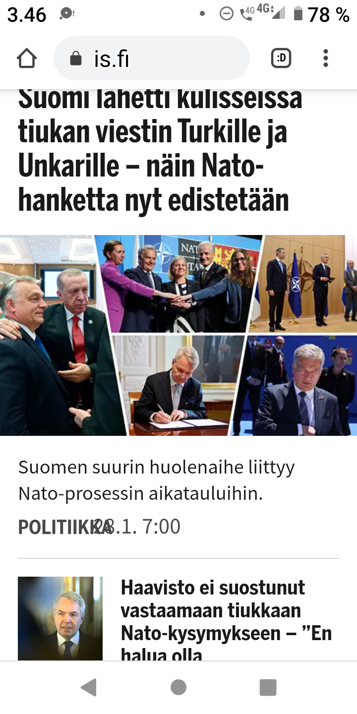 kopterihankinta. Julkisuudessa ei ole kerrottu mikä maa on kysymyksessä, arvatenkin joku Nato-maa. Piiloutumalla jonkun toisen maan selän taakse on aika raukkamaista "diplomatiaa". Päästiinhän kertaheitolla eroon tästä kiusallisesta mahdollisuudesta. Toinen juttu on mainostettu jonkinlainen paljousalennus. Tästähän ei koskaan saada mitään selvää, onko jotain alennusta myönnetty, miten sen voisi saada todellisuudessa selville? Myös tämä perustelu ontuu sen verran pahasti, että erilaisiin tarpeisiin hankittavien koptereiden "yhteishankinta" näyttää olevan pelkkä sumuverho, jota häikäilemättä kansalaisten päälle lasketaan. Tuloksena lienee, että hankitaan monenlaisia helikoptereita, kukin maa omiin tarpeisiinsa parhaiten soveltuvan. Nettisanomat