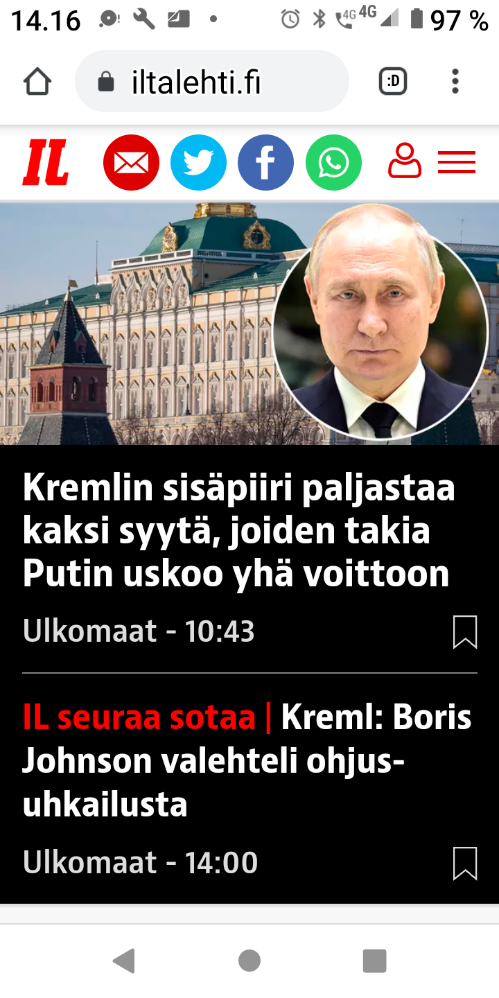 Lue myös! Arkisto 2022. Helmikuun 24. päivä 2022. Yle Radio1 aamulla klo 5:58 puheentunnistuksella. Lue! Lue myös! Arkisto 2022. Helmikuun 27. päivä 2022. Suomi lähettää tykkejä sotaan. Lue! |