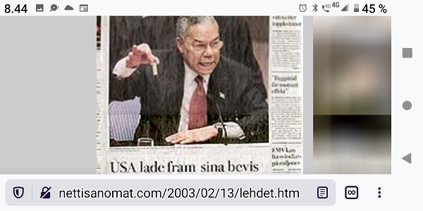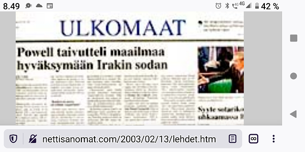 Irakia vastaan. DAGENS NYHETER sunnuntaina 19. tammikuuta 2003.