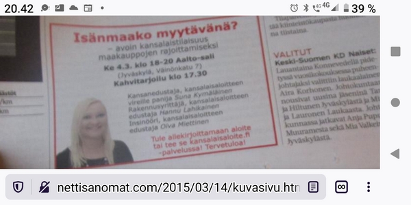 | Laukaa-Konnevesi- lehden koko aukeama numerossa http://www.nettisanomat.com/2017/03/08/etusivu.html |