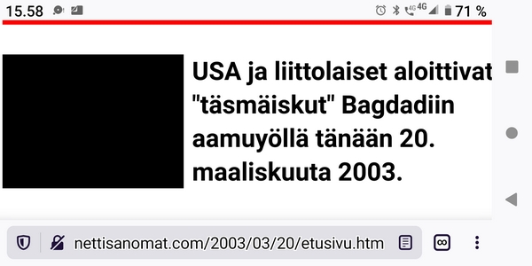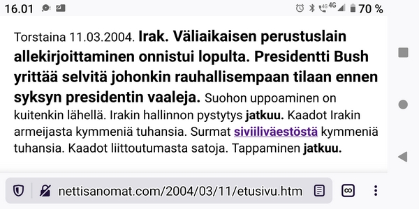 Torstai 19.1.2023. "Massiivisia protesteja Irakin sotaa vastaan." http://www.nettisanomat.com/ (Kuvat isonnettu 19.1.2023) |