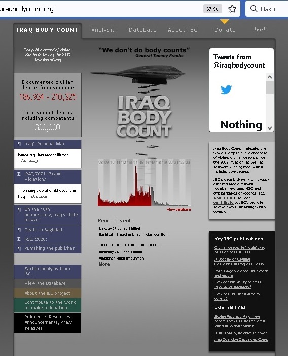 20 vuotta myöhemmin: https://www.iraqbodycount.org/ |