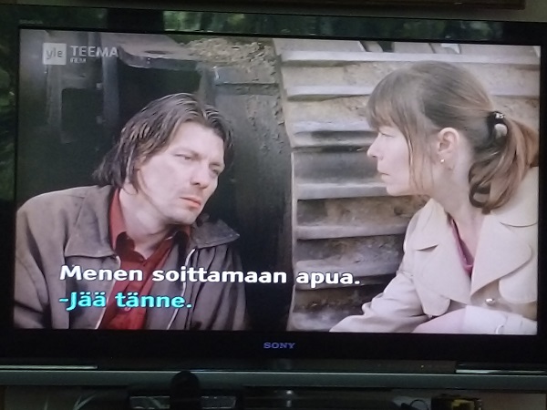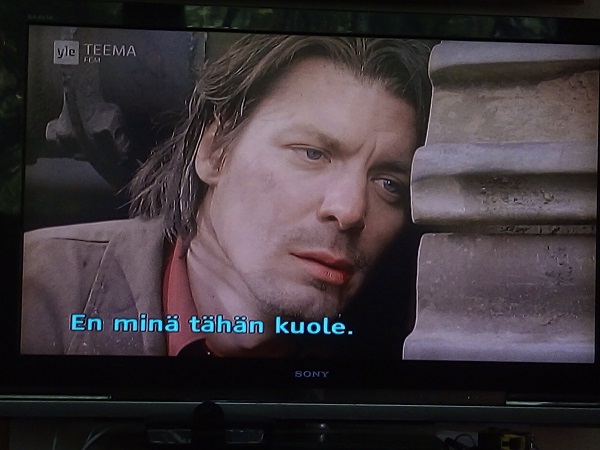 Menen soittamaan apua. Älä kuole. En minä tähän kuole. "En minä tähän kuole." Viimeinen repliikki Aki Kaurismäen elokuvassa Laitakaupungin valot. Elokuvan seitsemän viimeistä kuvaa kuvasarjana. Yle Teemakanavalta sunnuntaina 30.7.2023 13:09:46 - 6 sek - 4 sek - 9 sek - 6 sek - 8 sek - 5 sek myöhemmin. Kuvat Pertti Manninen.