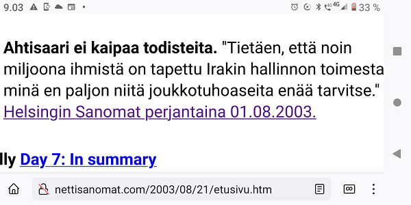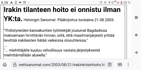 Torstai 19.1.2023. "Massiivisia protesteja Irakin sotaa vastaan." http://www.nettisanomat.com/ (Kuvat isonnettu 19.1.2023) |