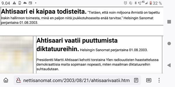 Torstai 19.1.2023. "Massiivisia protesteja Irakin sotaa vastaan." http://www.nettisanomat.com/ (Kuvat isonnettu 19.1.2023) |