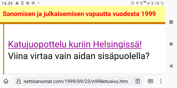 Päivälleen 24 vuotta sitten: Katujuopottelu kuriin Helsingissä! Viina virtaa vain aidan sisäpuolella? Lue! |