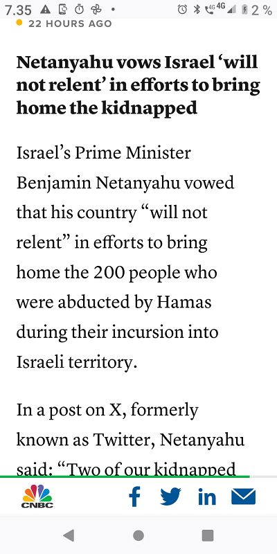 Sanomanetti - Sunnuntai 22.10.2023. cnbc.com/2023/10/21/israel-hamas-war-updates FRI, OCT 20 2023 2:04 PM EDT FRI, OCT 20 2023 2:04 PM EDT --- 21 HOURS AGO >>> --- Torstai 19.10.2023. Arvaa ketkä tai mitkä? SELVIÄVÄT? - METSÄT, RAAKA- AINEET, TALOUS Perjantaina 20.10.2023 klo 18-19 Jämsä, Kahvila-ravintola Akuliina Lauantaina 21.10.2023 klo 10.30-11.30 Konnevesi, Ravintola Mierontie Ravintola Sun Toive klo 14-15 Toivakka, Kahvitarjoilu. TERVETULOA! renew Vastaus täällä! - 20 vuotta sitten. 16.10.2003. Pääkirjoitus. Ylen tv-uutiset valehteli ministerin puheenvuoron! - 20 vuotta sitten. Muut lehdet. Valtio ryssi itse Fortumin Oilin. Taloussanomat. Kolumni. Tapani Pitzen. - 20 vuotta sitten. Viikon kuva. "Nykyaikaista taidepolitiikkaa". Pertti Manninen. --- Tiistai 17.10.2023. Asunnottomien yö 17.10. Arkistosta vuodelta 2005. - Maanantaina 17.10.2005 klo 08:50 Ylen radion aamulähetyksessä puhutaan asunnottomuudesta. Johdanto ja osa alkupuheenvuorosta puuttuu. Muitakin uutisia lopuksi. - Henkilöt esiintymisjärjestyksessä: Nainen: Kati, mies: Reijo, toimittaja: Kari Mäenpää, Ekokolon hoitaja: Markku Heino, Asunnottomien yö-kansalaisliikkeen organisaattori: Antti Honkonen, studiotoimittaja: Petri Kejonen ja kuuluttaja: Maaria Seppänen. Ääninauhalta purkanut Pertti Manninen, Nettisanomat, oikeinkuulemisvarauksin. Kuvat: Ruskea perhonen. Ruusut kukkivat, marjat punertavat ja lehdet vihertävät. --- Maanantai 16.10.2023. Tuuli käy heidän ylitseen. Martti Ahtisaari 1937- 2023. - Google-haku maanantaina 6.10.2023 14:47. Kuvat: Pertti Manninen. - Sunnuntaina 8.10.2023 täällä sivuilla etusivu - v20 - v24. 2008. Rauhanpalkinto 2008. Martti Ahtisaari. Nobelisti mielii yhä Natoon. Lue! 2008. Pääkirjoitus sunnuntaina 12.10.2008. Rauhanpalkintokaan ei rauhoittanut: Martti Ahtisaari haluaa yhä ydinaseita Suomeen. Lue! 2008. Ahtisaari: Suomi tarvitsee Nato-jäsenyyttä. Lue! 2008. Albaaaniperheelle Ahtisaari on rauhantekijä. Lue! 2003. Ahtisaari ei kaipaa todisteita. Lue! 2003. Ahtisaari vaatii puuttumista diktatuureihin. Lue! 25.09.2003. Pääkirjoitus. Uskaltaako Ahtisaari, USA:n juoksupoika mennä Bagdadiin? Lue! 2004. Turkki. Ahtisaari asialla: Kurdit myytävänä. Lue! 1999. Soitellen sotahan: tuho, jonka tahdoimme? Lue! --- Sunnuntai 15.10.2023. Kuvat MTV:n Kymmenen Uutisista 15.10.2023 22:01- 22:03. Gazassa ja Israelissa kuollut yhteensä jo 3750 ihmistä. Kuvat: Pertti Manninen. Sunnuntai 15.10.2023. JATKUU --- Tiistai 10.10.2023. Aleksis Kiven päivä 10.10. "Makeasti oravainen makaa sammalhuoneessansa." Kuva. - Kolme lippua liehuu Kirkkonummen uimahallilla kirjavan koulu taustanaan. Uusimaa. Kirkkonummi. Gesterbyntie. Tiistai 10.10.2023 13:36. Pertti Manninen. - Aleksis Kiven palkinto kirjailija Rosa Liksomille. --- Sunnuntai 8.10.2023. Rauhanpalkinto 2008. Martti Ahtisaari Lue! Rauhanpalkinto 2009. Barack Obama Lue! Rauhanpalkinto 2023. Narges Mohammadi Lue! --- Lauantai 7.10.2023. Rauhanpalkinto 2023. Nobelin rauhanpalkinto iranilaiselle naisten oikeuksien puolustajalle. Palkittu Narges Mohammadi on parhaillaan vangittuna Iranissa. Lehtien sivut perjantaina 6.10.2023 15:54- 16:07. --- Perjantai 6.10.2023. 20 vuotta sitten 25.9.2003. Moe haluatko miljönääriksi ohjelman juontajana. By Matti Reijonen Moe 20 vuotta sitten: 2.10.2023 - 3.10.2023 - 4.10.2023 - 5.10.2023 - 6.10.2023 - --- 20 vuotta sitten 2.10.2003. Pääkirjoitus. Puhetta. "Hyvät maanmiehet, tilanne on vakava. - Pääkirjoituksia. Linkit --- Sunnuntai 1.10.2023. Kurjet lentävät. Uusimaa. Kirkkonummi. Lapinkylä. Kuva Pertti Manninen. --- Lauantai 30.9.2023. Nettisanomat lauantai 2006-11-11. Aivoina Björn Wahlroos ja Ahti Hirvonen Lue! --- Veropakolainen Björn Wahlroos vuosien varrelta. Juoksupojasta pomoksi. --- Keskiviikkona 27.9.2023. Päivälleen 24 vuotta sitten: Katujuopottelu kuriin Helsingissä! Viina virtaa vain aidan sisäpuolella? Lue! - 24 vuotta sitten: torstaina elokuun 12. päivänä 1999 Köyhät opiskelijat, painukaa helvettiin! Ben Zyskowicz. Vertti Kiukas. Janne Virkkunen. ---Tiistaina 26.9.2023. Lähtöä odottaen. Joutsenet pellolla. Uusimaa. Kirkkonummi. Lapinkylä. Maanantai 25.9.2024 15:33. Kuva Pertti Manninen. - Kommentti: Orpo ja Purra yrittävät tökeröä taloustemppua, jolla Reagan ja Thatcherkin saivat aikaan mittavaa vahinkoa. Lue! Kommentti. Jan Hurri. --- Sunnuntaina 24.9.2023. Syksyn lehdet metsäojassa. Uusimaa. Kirkkonummi. Lapinkylä. Sunnuntai 24.9.2024 15:18. Kuva Pertti Manninen. - Näin paljon korkeakoulu- opiskelijoiden talous on heikentynyt: Yliopistoja valtaavien opiskelijoiden huoli on aito. Uusi Suomi. Kommentti. Sonja Mänty. Lue! --- Perjantaina 22.9.2023. Ajankohtaista narutusta? Narutusta Mansessa 2023 Narutusta Moskovassa 2022. - Keskiviikkona 20.9.2023. KALTSIN KALTSIT Valokuvaaja Aulis Nyqvist. - HS: Kirjailija Torsti Lehtinen kuollut - Keskiviikkona 20.9.2023. Niinistön sanoja ja puheita tulkitaan ja ihmetellään. Ilta-Sanomat tiistai 19.9.2023 --- Maanantaina 18.9.2023. Luottamusta. Ulkomaat Niinistö Putin HS 17.9. - Trump Putin Iltalehti 17.9. - Erdogan Ilta-Sanomat 16.9. - Ardern Støre Marin Trudeau HS 17.9.2023. Kotimaa Orpo Iltalehti 15.9. - Orpo Nettisanomat 20.6. Kuvasarja. - Orpo HS 15.9. - Orpo HS 15.9.2023. Luottamusta. --- Sunnuntaina 17.9.2023. Varrella viikon. Luontokuvia. Maanantaina 11.9.2023. ... Kurjet torstaina 14.9.2023 09:31. Uusimaa. Kirkkonummi. Lapinkylä. ---- Tiistaina 12.9.2023. Teuvo Suomisen vaikuttavat kuvat. --- Maanantaina 11.9.2023. Henrik Meinander: Itseään kunnioittava kansakunta ei siivoa historiaansa katukuvasta. HS Mielipide. 9.9.2023. Lue! --- Sunnuntaina 10.9.2023. Arkisto 2005. Tulossa? 19.03.2005. George W. Bush ja Tony Blair sekä Saddam kahleissa. - Leif Salmén. Kolumni. Taas raha puhuu. Iltalehti keskiviikkona 13.4.2005. --- Perjantaina 8.9.2023. Sanna Marin paholaisen palkkalistoille Pääkirjoitus. Perjantai 8.9.2023 20:01 Kuva. --- Torstaina 7.9.2023. Arkistokuvat: Helsinki 1952: "Jen