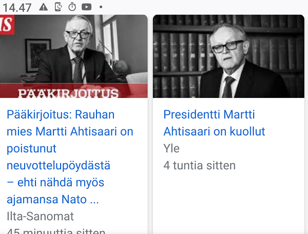 16.10. Tuuli käy heidän ylitseen. Martti Ahtisaari 1937- 2023. Lue! |
