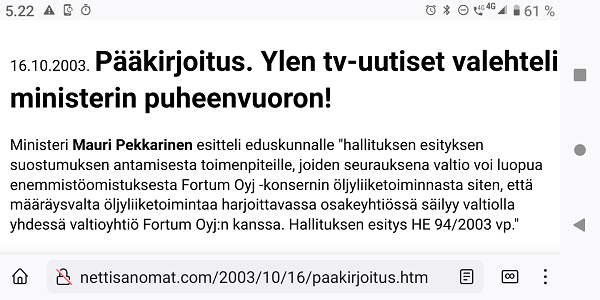 http://www.nettisanomat.com/2003/10/02/paakirjoitus.htm Arkisto. 20 vuotta sitten torstaina 2.10.2003. |
