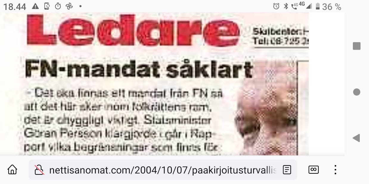 Sunnuntai 8.10.2023. Pääkirjoitus sunnuntaina 2008-10-12. Rauhanpalkintokaan ei rauhoittanut: Martti Ahtisaari haluaa yhä ydinaseita Suomeen. HBL Hufvudstadsbladet. Debatt. Nato. Aktualisera en kärnvapenfri zon igen. Stig Gustafsson. Curt Riberdahl. Tisdag 21 november 2006. (Käännös: Pertti Manninen). Ydinaseeton vyöhyke on tehtävä taas ajankohtaiseksi. Muut lehdet. Keskisuomalainen, ulkomaat perjantaina 29.11.2002. Washington, STT Bush nostaa Henry Kissingerin, 79, takaisin politiikan parrasvaloihin Ahtisaari ei kaipaa todisteita. "Tietäen, että noin miljoona ihmistä on tapettu Irakin hallinnon toimesta, minä en paljon niitä joukkotuhoaseita enää tarvitse." Helsingin Sanomat perjantaina 01.08.2003. Turkki. Ahtisaari asialla: Kurdit myytävänä. "Turkin EU-jäsenyyden edut painavampia kuin haasteet". Täysin kritiikitön ja epämääräistä toimikuntaa esittelemätön kirjoitus Helsingin Sanomissa maanantaina 06.09.2004. Nobelisti mielii yhä Natoon. Albaaaniperheelle Ahtisaari on rauhantekijä. Nobelisti mielii yhä Natoon Linkkejä ja kirjoituksia. 35 kpl http://www.nettisanomat.com/2008/10/12/etusivu.html#linkkeja |