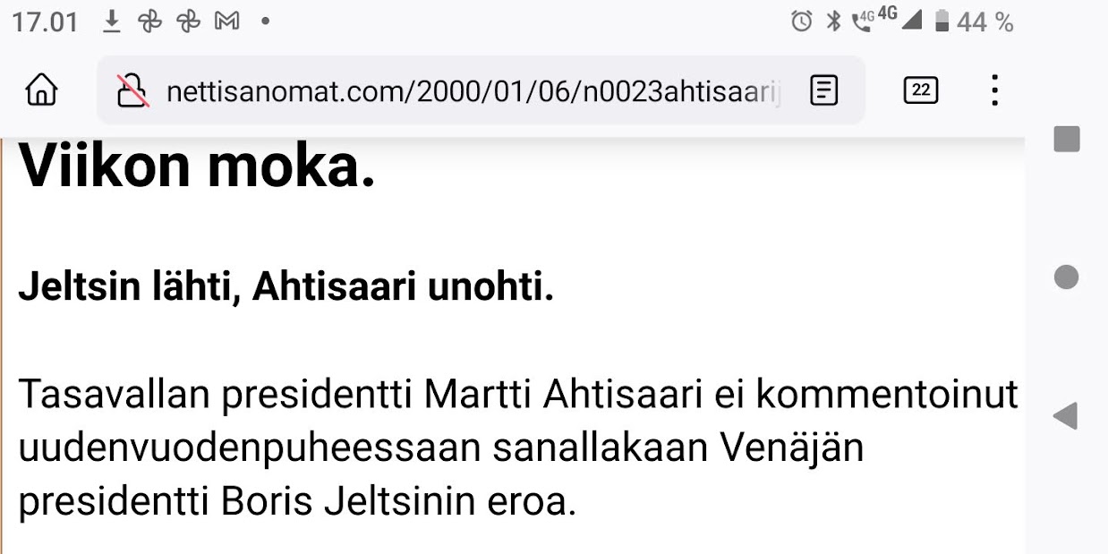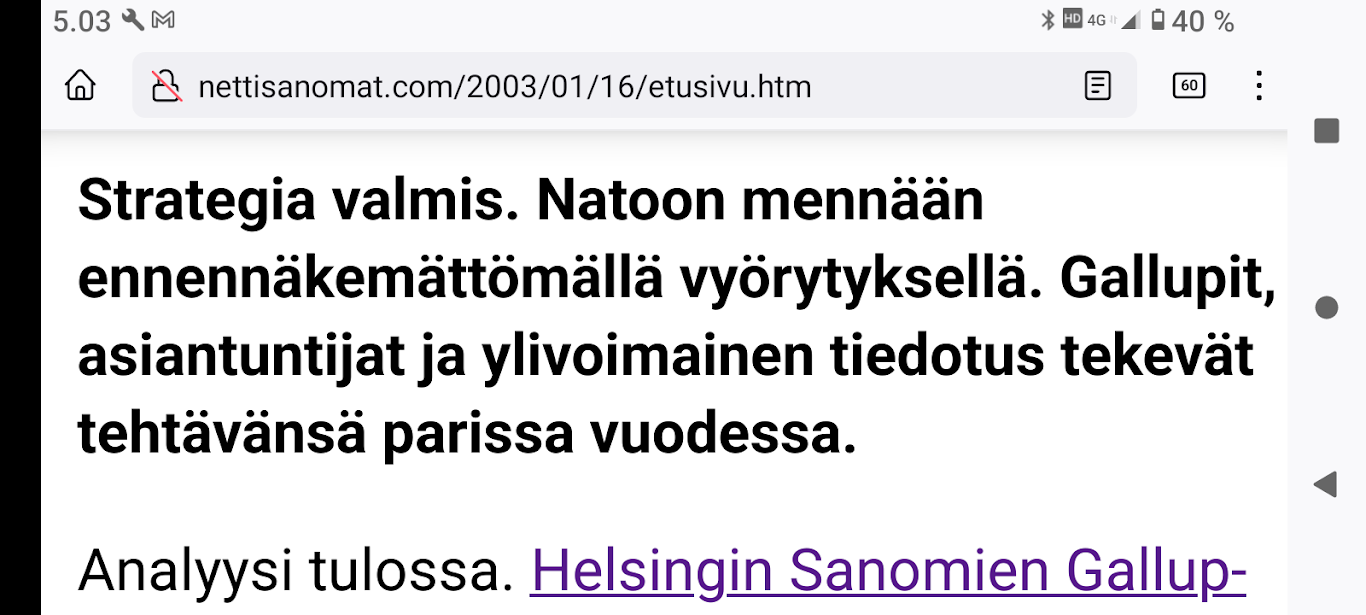 14.3.2023. Osattiin sitä ennenkin, 20 vuotta sitten. Arkisto 2003 tammikuu. Vuoden nuolaisu. Paavo Lipponen. Lue! |