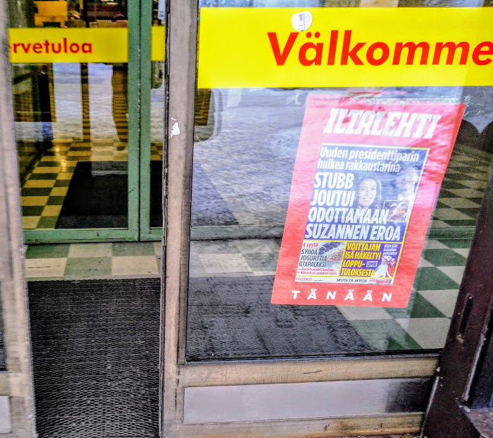 Tuulinen päivä tiistaina 13.2.2024 Pääkirjoitus. Malttia. Natohaukka-presidentti, Guardianin toimittajan ilmaisu vaalit voittaneesta ehdokkaasta, saa sitten toimia niin haukkamaisesti kuin itse katsoo tarpeelliseksi. Kannattaa ehkä kuitenkin kysyä taustajoukkojenkin mielipidettä: kuinka haukkoja he haluavat olla. Ja tietenkin kansan mielipidettä. Stubbillahan on noin kolmanneksen osuus kansasta takanaan, Haavistolla toinen kolmannes ja viimeinen kolmannes onkin sitten se osa kansasta, joka ei äänestänyt vaaleissa kumpaakaan ehdokasta. Tästä jakaumasta media on yleensä hiljaa ja hehkutetaan vain sitä 51 prosenttia. Yhdessä julisteet ovat lähteneet, vain telineitä pystyssä pitäneet betonilaatat ovat jääneet paikoilleen. Näitä kolmea pointtia korostamalla Haavisto olisi ehkä saanut äänestäjiä lisää kummeksumaan Stubbin touhuja, tai olisihan se voinut vaikuttaa toiseenkin suuntaan. Tätähän emme saa koskaan tietää. Vahingonlaukaus. Palttoon nappi tiistaina 13.2.2024. 3. pääkirjoitus. Homous. Voi vain arvata paljonko näillä ulostuloilla oli vaikutusta tässä vaalissa. Valtalehdistöhän ainakin tällä kertaa pysyi siistimpänä, Sanoma Oy:n lehdet HS ja IS toivat esille vain puolison suutelun (HS) ja puolisoiden haastattelut (IS) ainakin kahteen kertaan. Tämä ihan vain sillä tietämyksellä, joka kohdalle osui. 3. pääkirjoitus. Pertti Manninen. 13.02.2024 11:17 Kirkkonummen kirjastossa. Tervetuloa - Välkommen. Salen ovella tiistaina 13.02.2024 Stubb joutui odottamaan Suzannen eroa. Tuulinen päivä tiistaina 13.02.2024. |