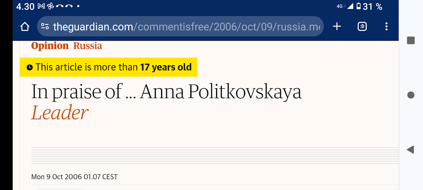 SANOMANETTI - N:o 2878 - Maanantai 26.02.2024 - Ukraina. Ylen aamu-uutiset 24.2.2022 ja 24.2.2024 puheentunnistuksella. Krim maaliskuussa 2014. - Jäädytetäänkö Harkimonkin rahavarat? Rahanpesuepäilyt liippaavat läheltä. Lue! - Kohudosentti Johan Bäckman todisteli vaalien "laillisuutta" - Obama kovisteli Putinia: Emme ikinä tunnusta kansanäänestystä - Suomen ulkopoliittinen johto: "Krimin kansanäänestys laiton" - Ukrainalaispoika palautti Putinin antaman lahjakellon. Otsikot - Ukraine - Referendum - Sanctions - Alibaba. Kuvat - Niinistö tapasi Kiinan presidentin. Kuvat. - Arkisto. 2006. Verenpunainen syksy Suomessa ja maailmalla. Toimittaja tapetaan Venäjällä. Joka 40. irakilainen on kuollut vuoden 2003 hyökkäyksen jälkeen sodan jaloissa. Elämme veristä aikaa. Linkkejä: Leader: In praise of Politkovskaya Obituary: Anna Politkovskaya - '655,000 Iraqis killed since 2003' One in 40 'killed since invasion' - Nämä lehdestä Guardian Unlimited, jonka arkistot ovat avoinna, toivottavasti vielä vuosien päästä. Pääkirjoitus. Nettisanomat perjantai 2006-10-13. Pertti Manninen. --- Keskiviikko 21.02.2024 - The Guardian Wed 21 Feb 2024 Barely 10% of Europeans believe Ukraine can still defeat Russia, finds poll. https://www.theguardian.com/world/