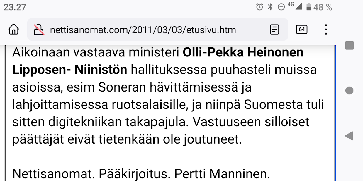 14.3.2023. Osattiin sitä ennenkin, 20 vuotta sitten. Arkisto 2003 tammikuu. Vuoden nuolaisu. Paavo Lipponen. Lue! |