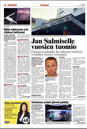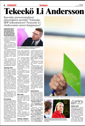 SUOMEN SUURIN UUTISHEDIA LTA-SANOM PERUSTETTU 1932 160 sivua! JUHANNUSJATTI MOKKIEN MAHTAVAT MUODON- MUUTOKSET JULKKISTEN IHANAT HÄÄKUVAT Vinkiminen vuoren huipulla poliisit Yhdessä 35 vuotta TEEMU AVAUTUU RAKKAUDESTA SIRPAAN Kirsi Alm-Siira Juhannuksen- vietto mullistui Suuret tietovisat: 150 kysymystä Tonnin ristikko Rakkaushoroskooppi OSTA MYOS Li Andersson Brysseliin TYTAR VAIKUTTI ISOON PÄÄTÖKSEEN Tällaista on elämä 60000 €/kk -eläkkeellä --