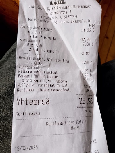 | Uusimaa. Kirkkonummi. Veikkola. K-Supermarket. Keskiviikkona 26.2.2025 13:15. Kuva Pertti Manninen. |