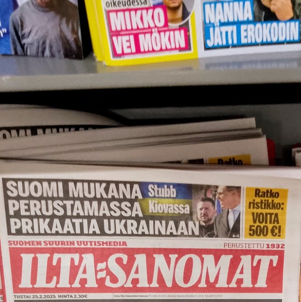 MIKKO VEI MÖKIN NANNA JÄTTI EROKODIN SUOMI MUKANA PERUSTAMASSA PRIKAATIA UKRAINAAN Stubb Kiovassa Ratko ristikko: Voita 500 e! SUOMEN SUURIN UUTISMEDIA PERUSTETTU 1932 ILTA-SANOMAT TIISTAI 25.2,2025 HINTA 2,30 e