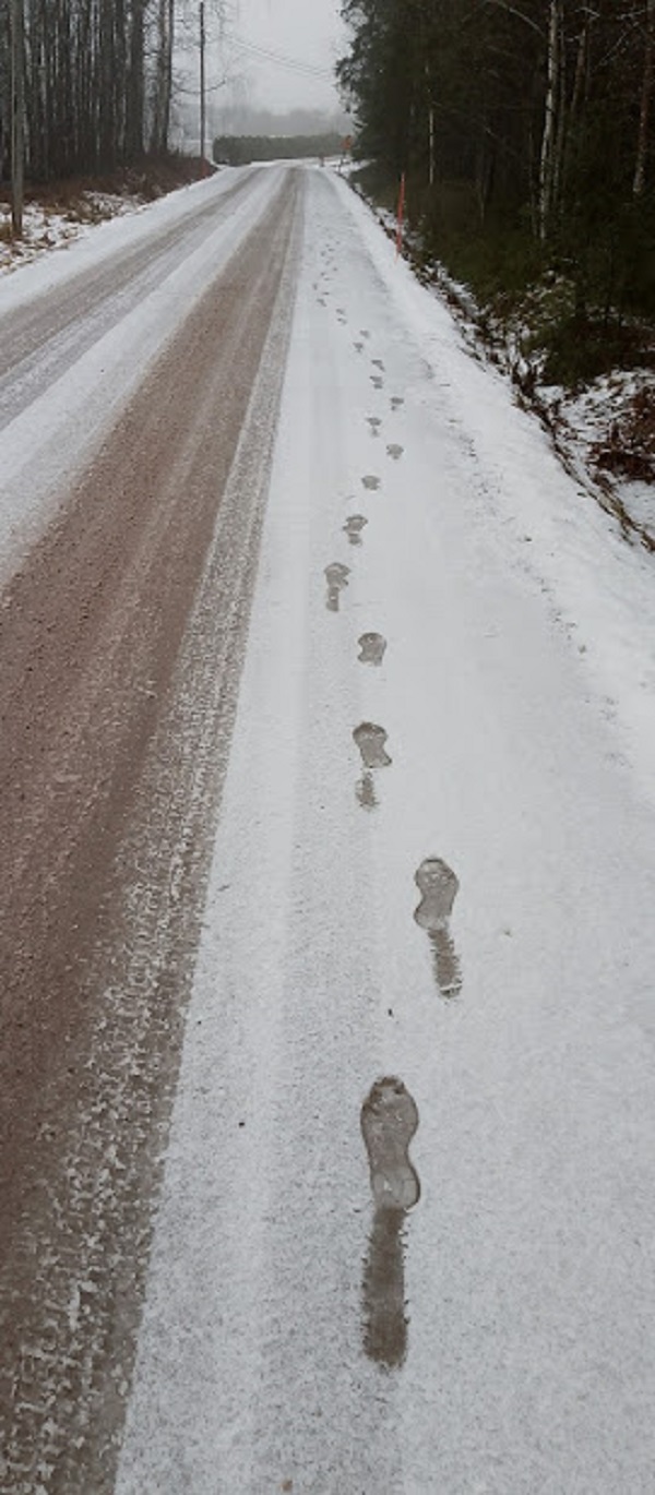 "Jälkiä lumessa." |