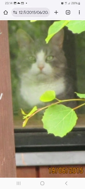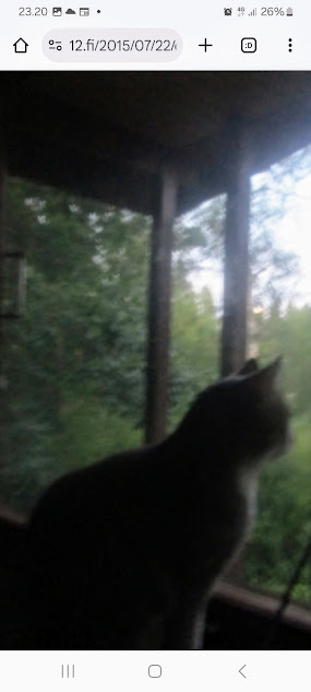 | 24.7.2014. "Kissa pöydällä! Rasmus raapii ikkunaa päästäkseen sisätiloihin."