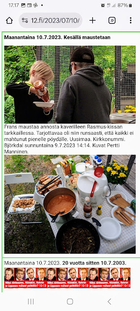 10.7.2023. ![]() Maanantaina 10.7.2023. Kesällä maustetaan Maanantaina 10.7.2023. 20 vuotta sitten 10.7.2003. Nykyposti 7/2003 heinäkuussa 2003. Mikko Niskasaari. "Ahtisaaren, Niinistön, Rehnin ja Lipposen valheet peiteltiin. Valehdella saa - mutta eivät kaikki. Anneli Jäätteenmäki jäi kiinni valheesta ja pantiin viralta. Moni muukin poliitikko on valehdellut, mutta miksi niistä vaietaan? Lue! https://www.nettisanomat.com/2023/07/10/etusivu.html