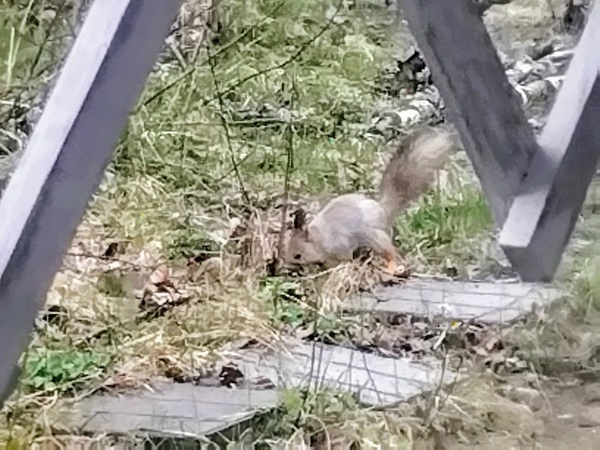 Pikkuinen orava tutkimassa pikkuista työmaata. Uusimaa. Kirkkonummi. Björkdal. Sunnuntai 18.5.2025 14:30. Kuva Pertti Manninen. |